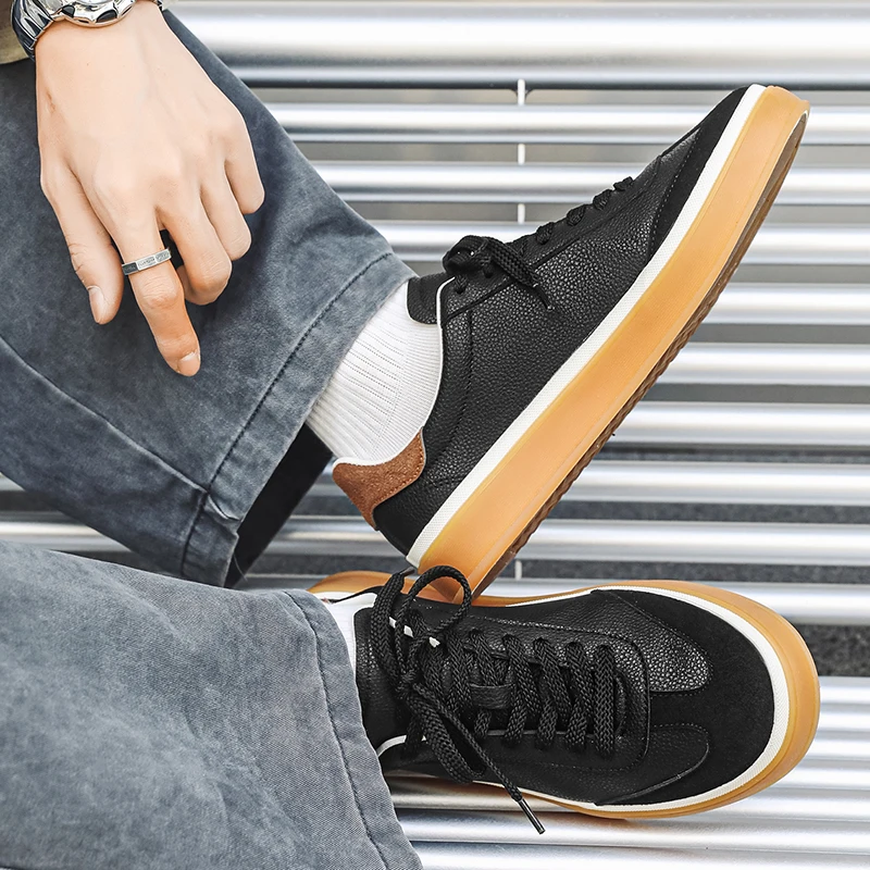 New Design Men’s High Top Black Casual Shoes Vintage Thick Sole Elevated Derby Sneakers