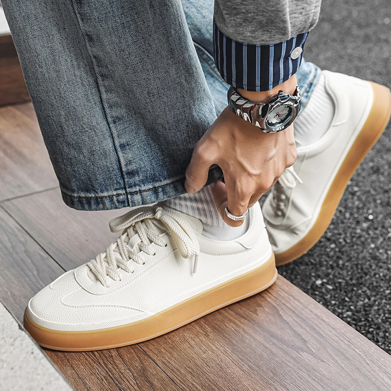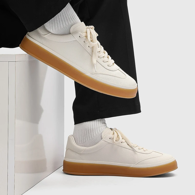 Men’s Classic White Sneakers Casual Fashion Lace-Up Walking Shoes